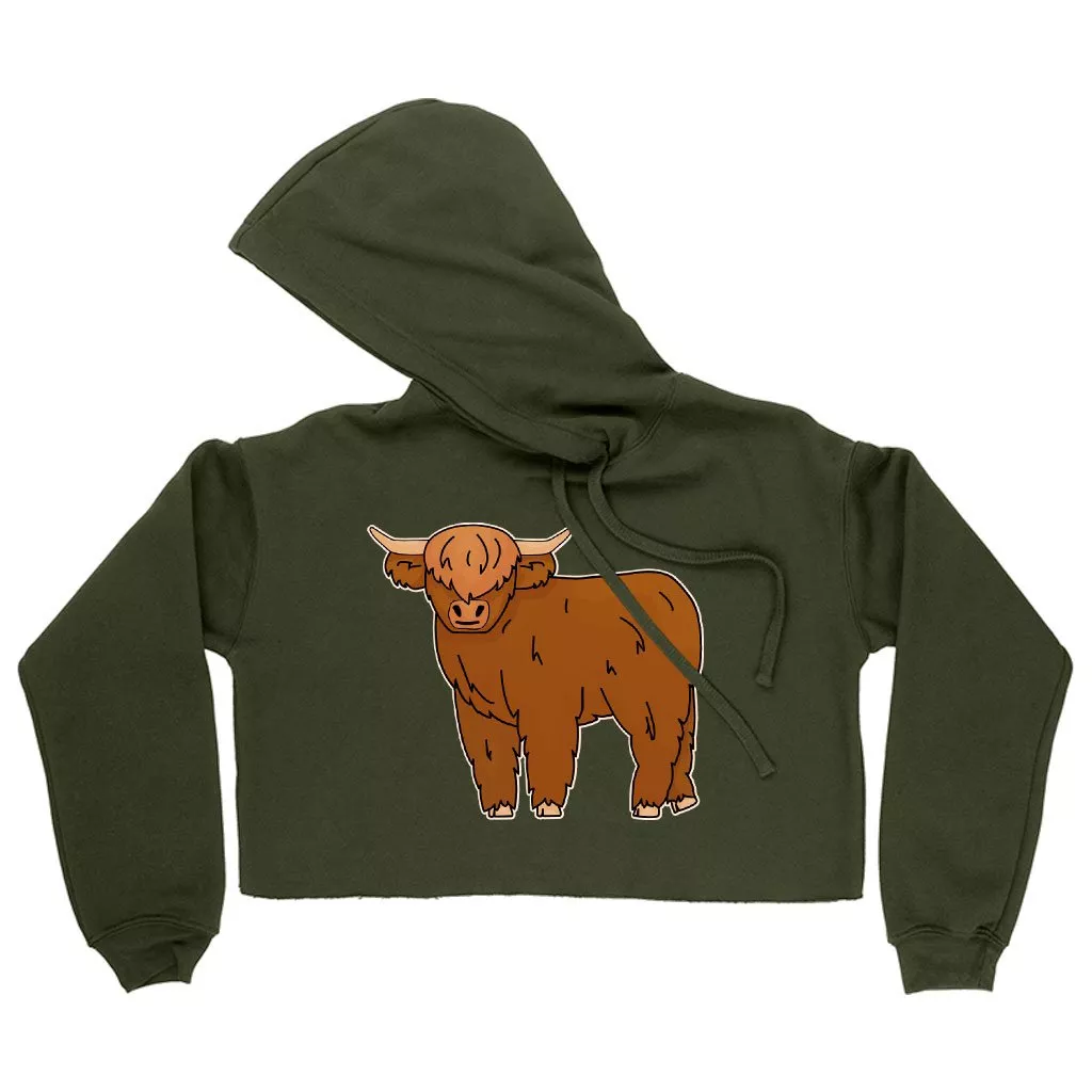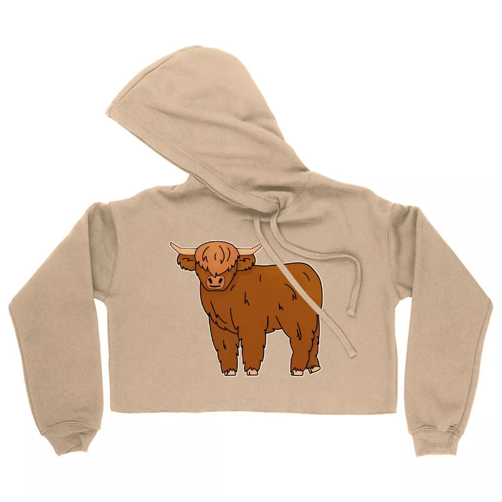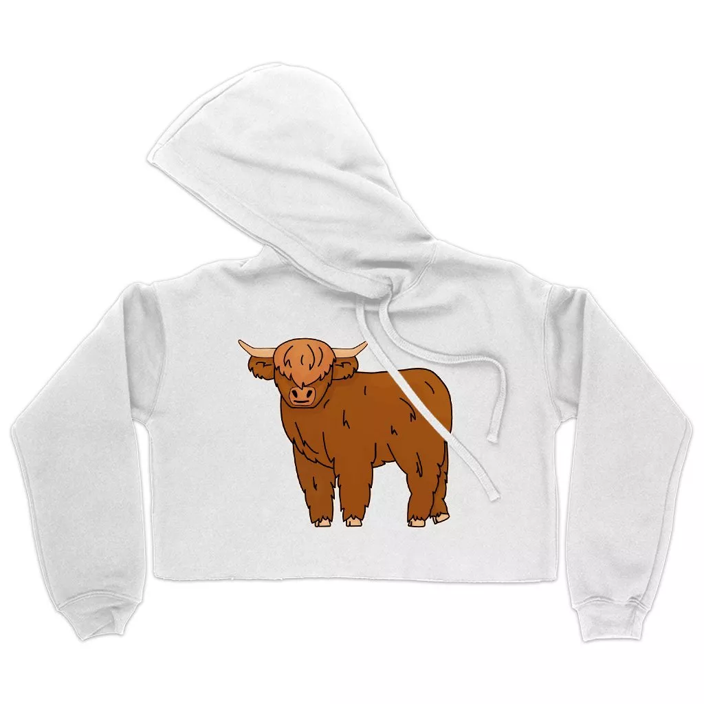 Women’s Cropped Fleece Highland Cow Hoodie – Cute Animal Hoodie
