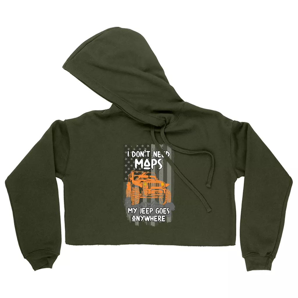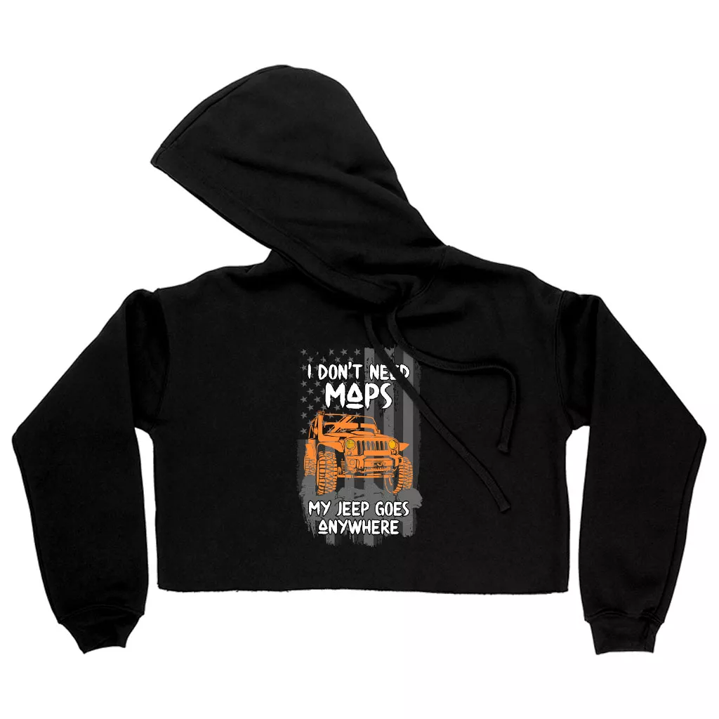 Women’s Cropped Fleece I Don’t Need Maps Hoodie – Funny Jeep Hoodies – Funny Graphic Hoodie