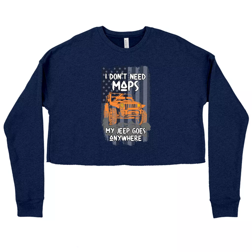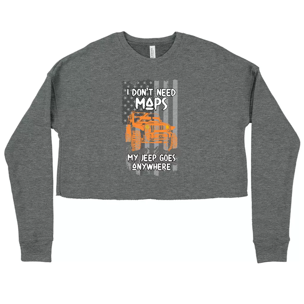 Women’s Cropped Fleece I Don’t Need Maps Sweatshirt – Funny Jeep Sweatshirts – Funny Graphic Sweatshirt
