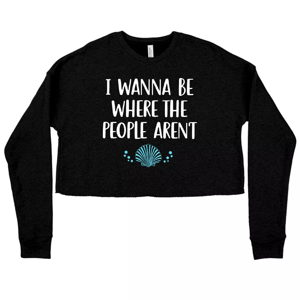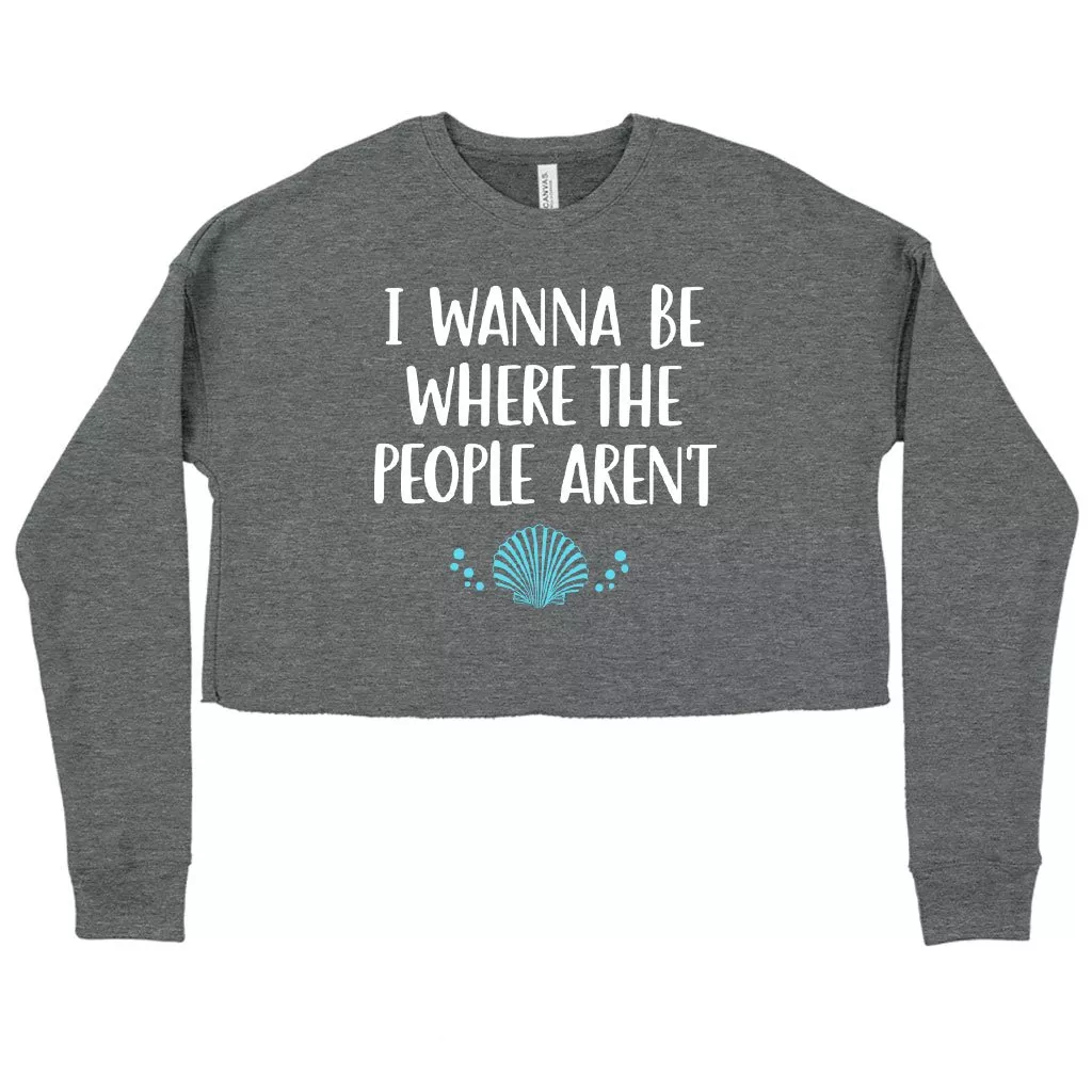 Women’s Cropped Fleece I Wanna Be Where the People Aren’t Humorous Sweatshirt – Funny Adult Sweashirt