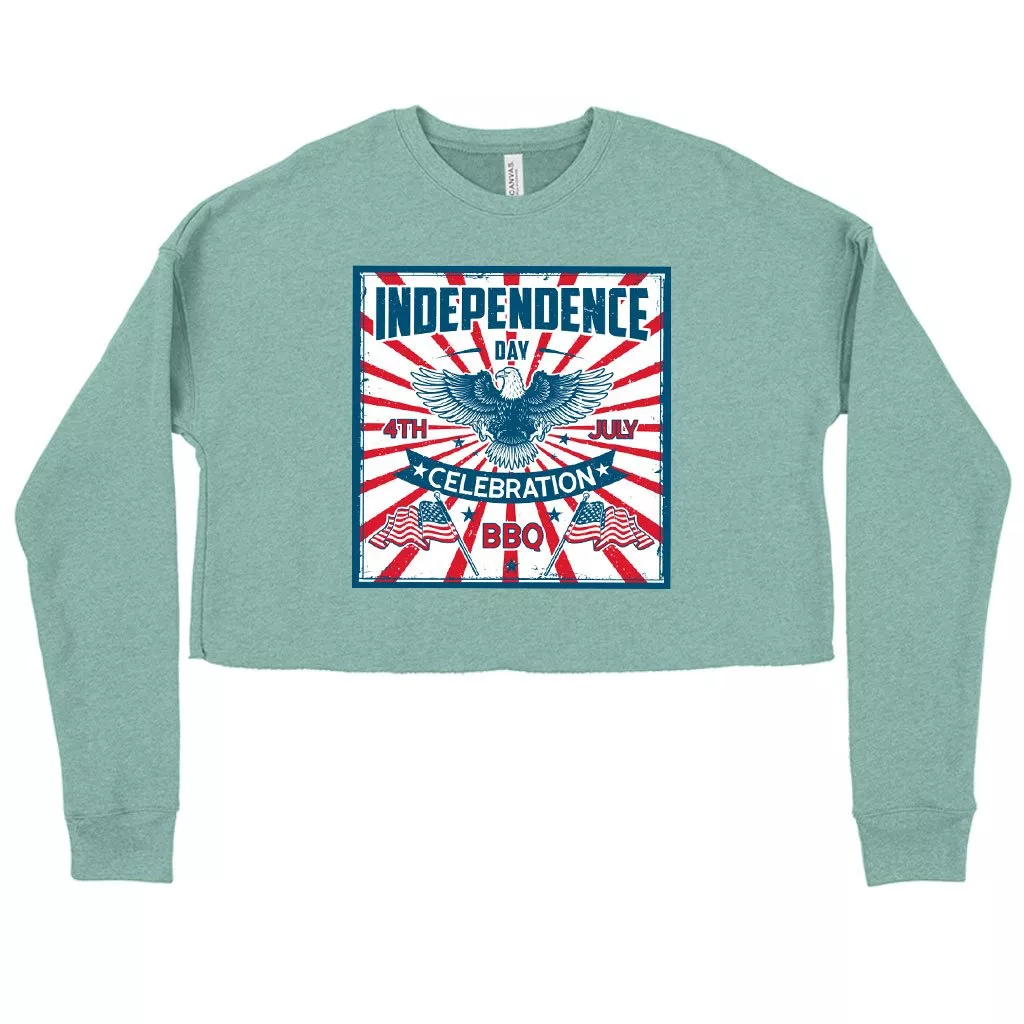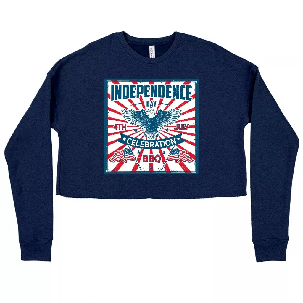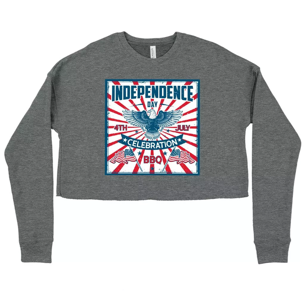Women’s Cropped Fleece Independence Day Celebration Sweatshirt – Vintage Independence Day Sweatshirt – Patriotic Sweatshirt