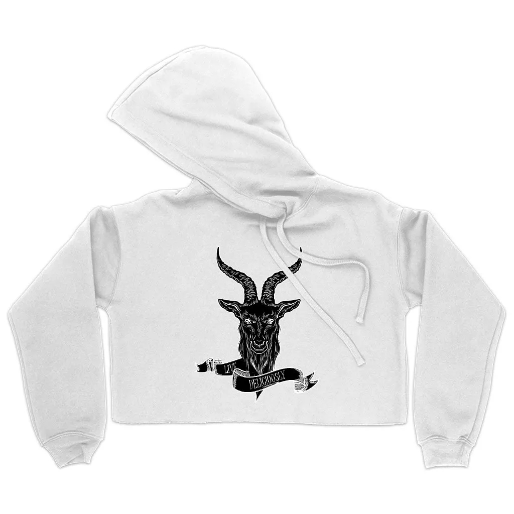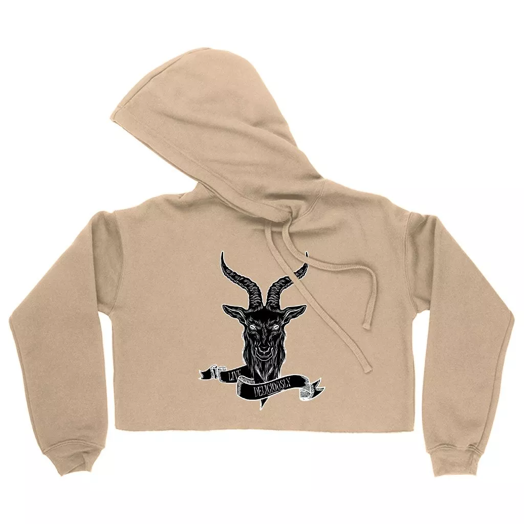 Women’s Cropped Fleece Live Deliciously Hoodie – Black Phillip Goat Hoodie