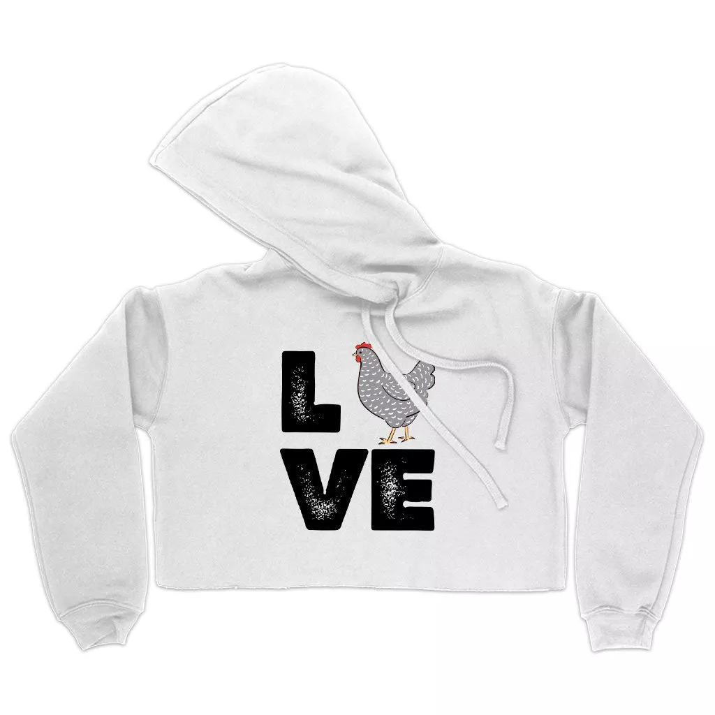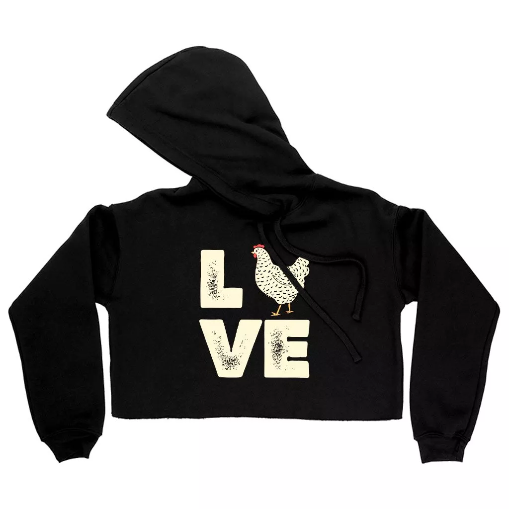 Women’s Cropped Fleece Love Chicken Hoodie – Distressed Graphic Hoodie
