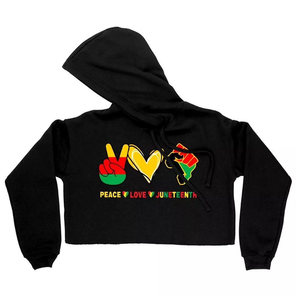 Women’s Cropped Fleece Love Peace Juneteenth Hoodie