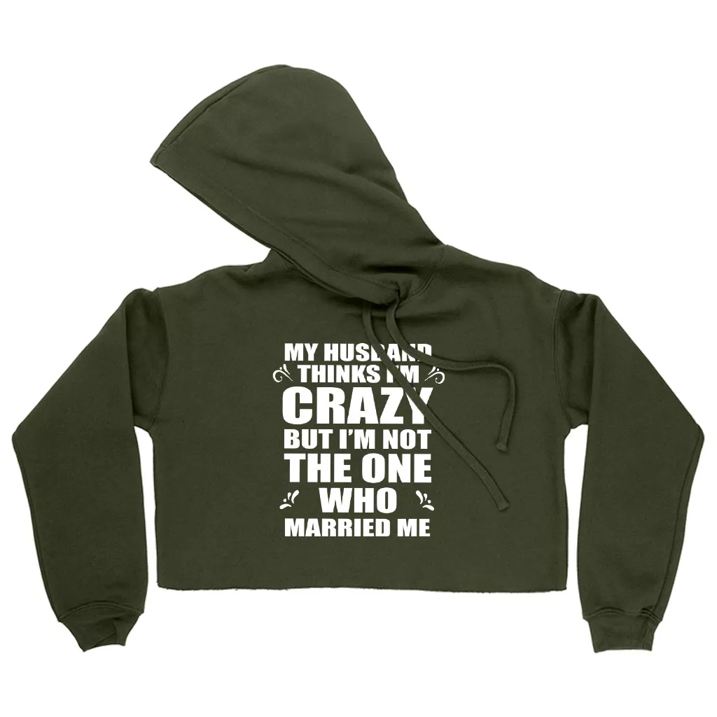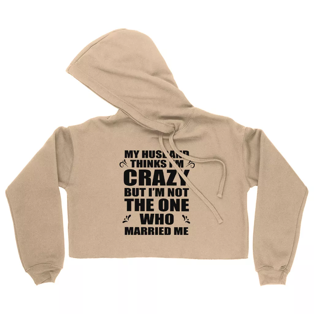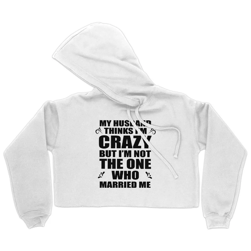 Women’s Cropped Fleece My Husband Thinks I’m Crazy Hoodie – Funny Husband Wife Hoodies