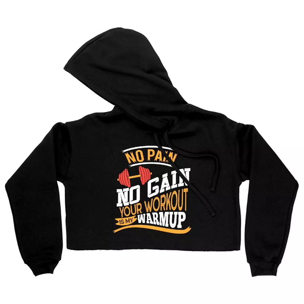 Women’s Cropped Fleece No Pain No Gain Hoodie – Fitness Hoodie Design – Gym Hoodie