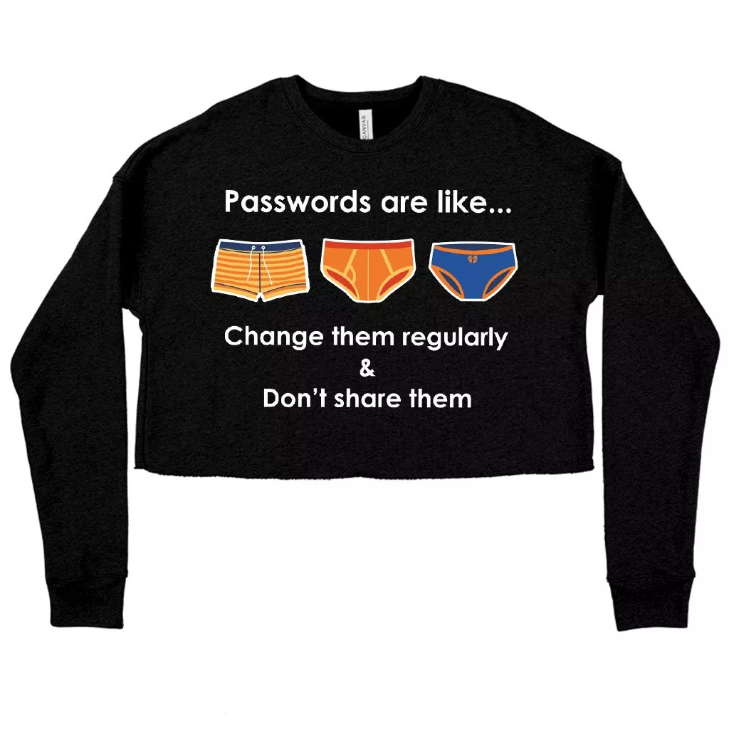 Women’s Cropped Fleece Passwords Are Like Sweatshirt – Funny Cyber Security Sweatshirts