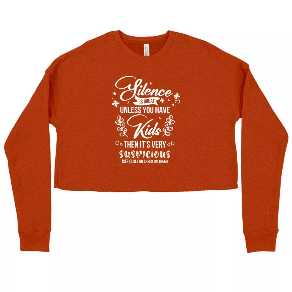 Women’s Cropped Fleece Silence Is Great Sweatshirt – Funny Mom Sayings Sweatshirts – Mother Sweatshirt