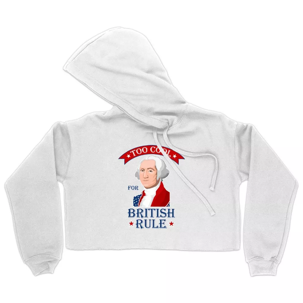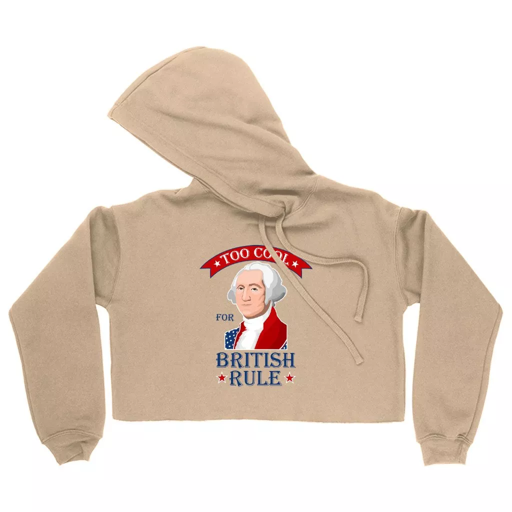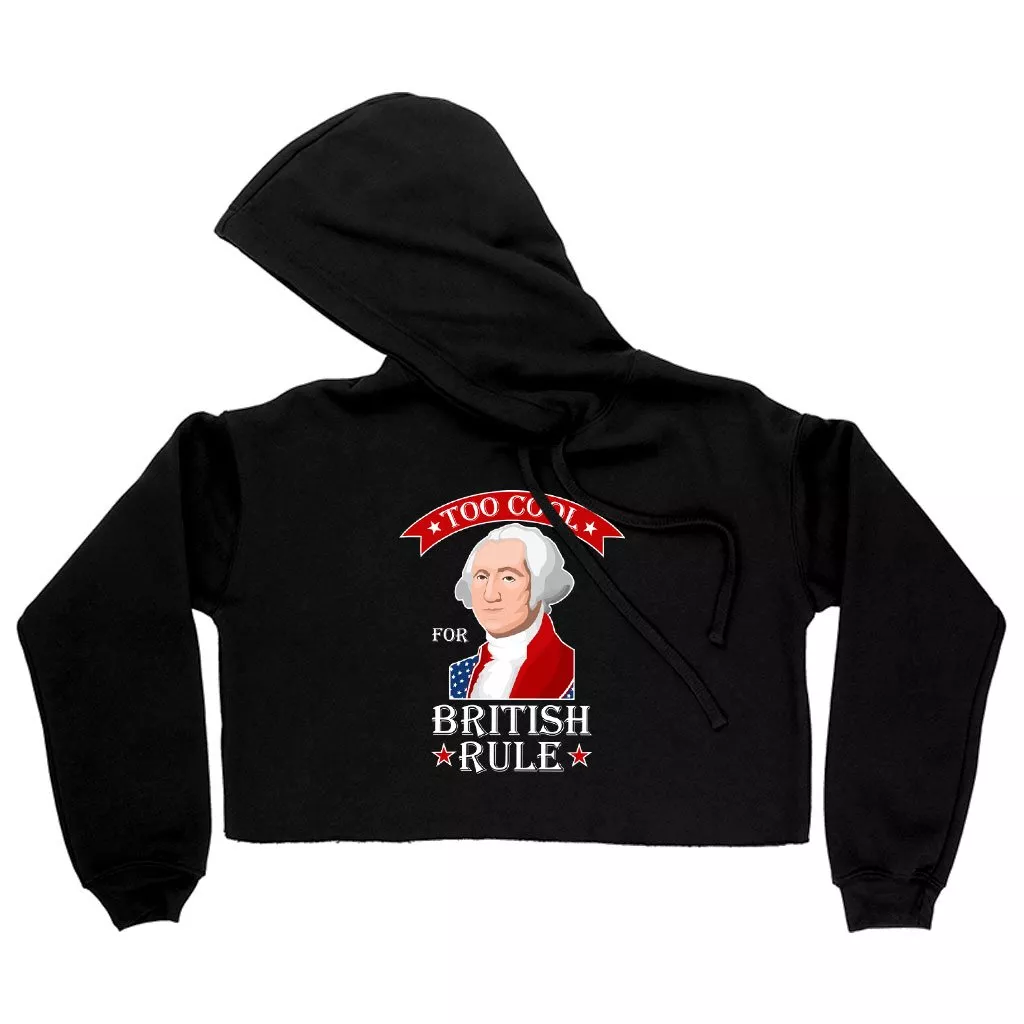 Women’s Cropped Fleece Too Cool for British Rule Hoodie – George Washington Hoodie – Funny Independence Day Hoodies