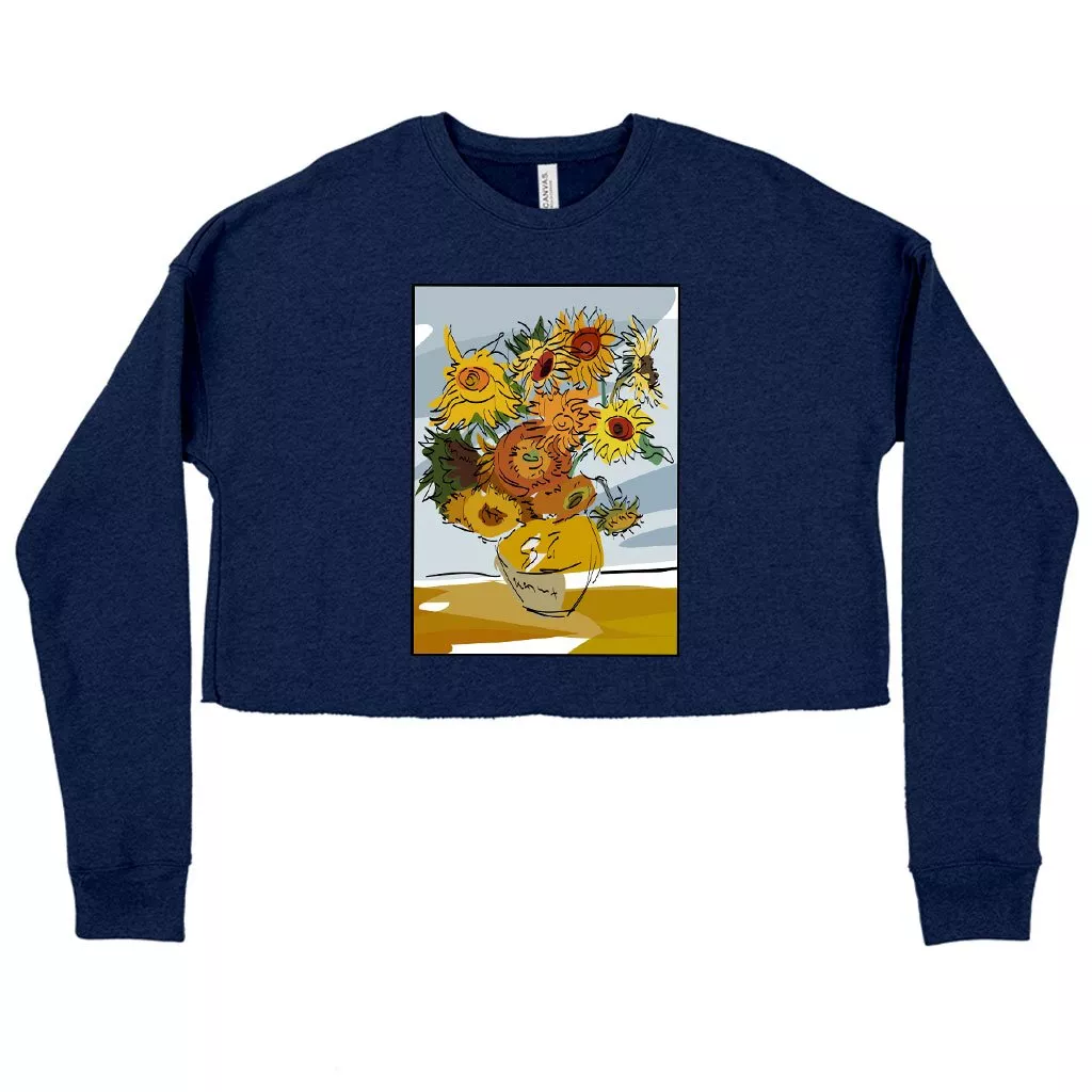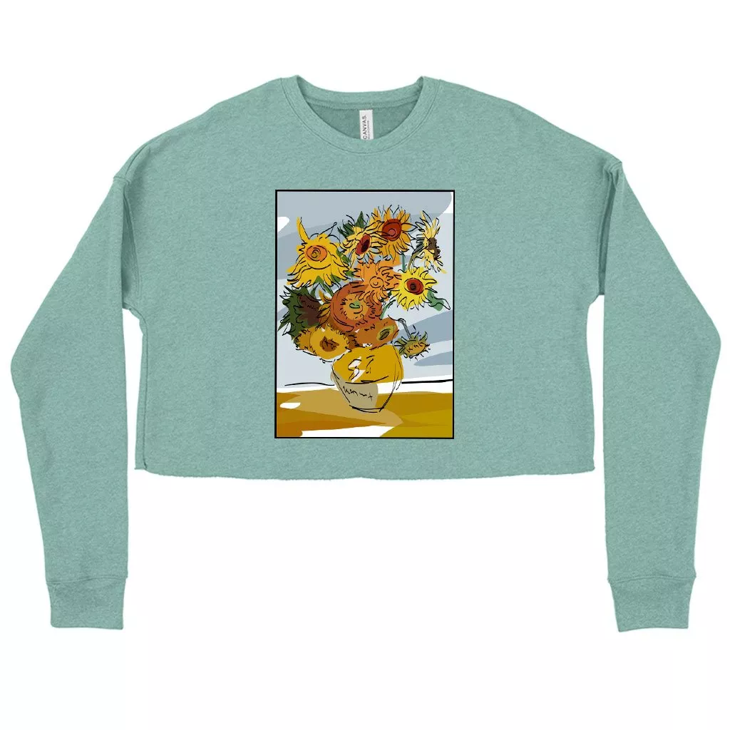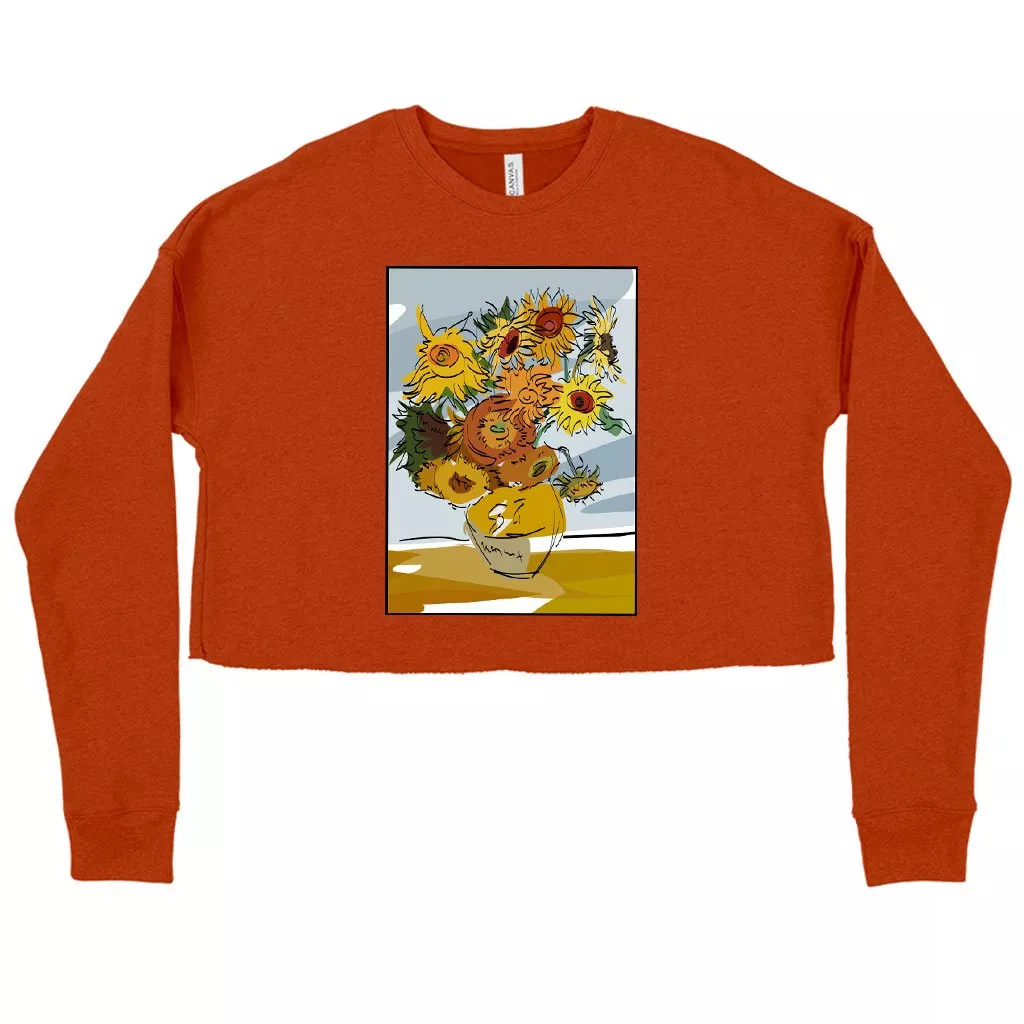 Women’s Cropped Fleece Van Gogh Sunflowers Sweatshirt – Art Print Sweatshirts