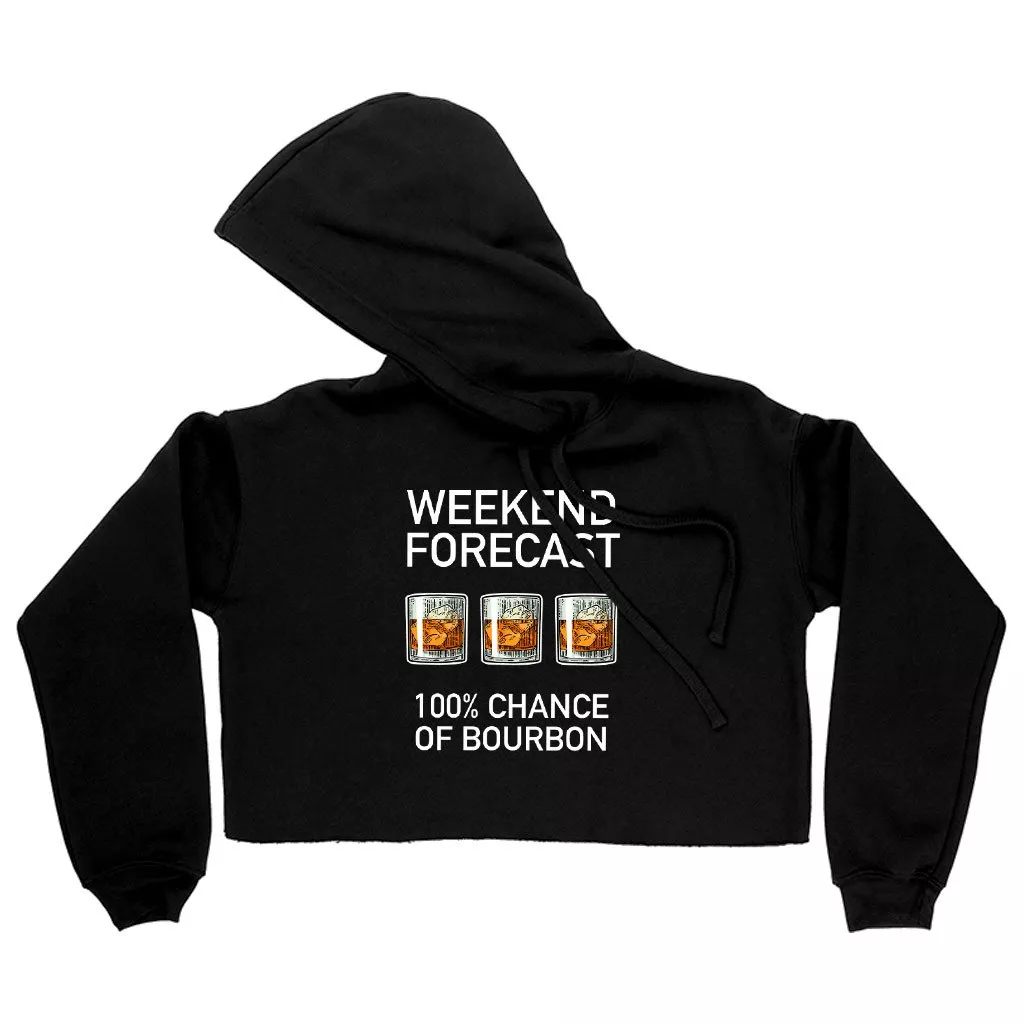 Women’s Cropped Fleece Weekend Forecast Bourbon Funny Drinking Hoodie – Adult Humor Hoodies