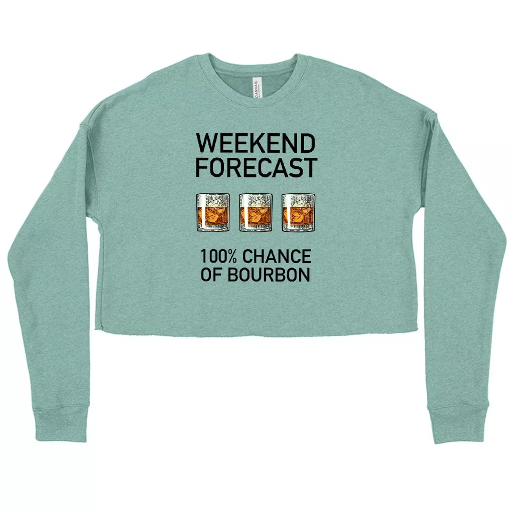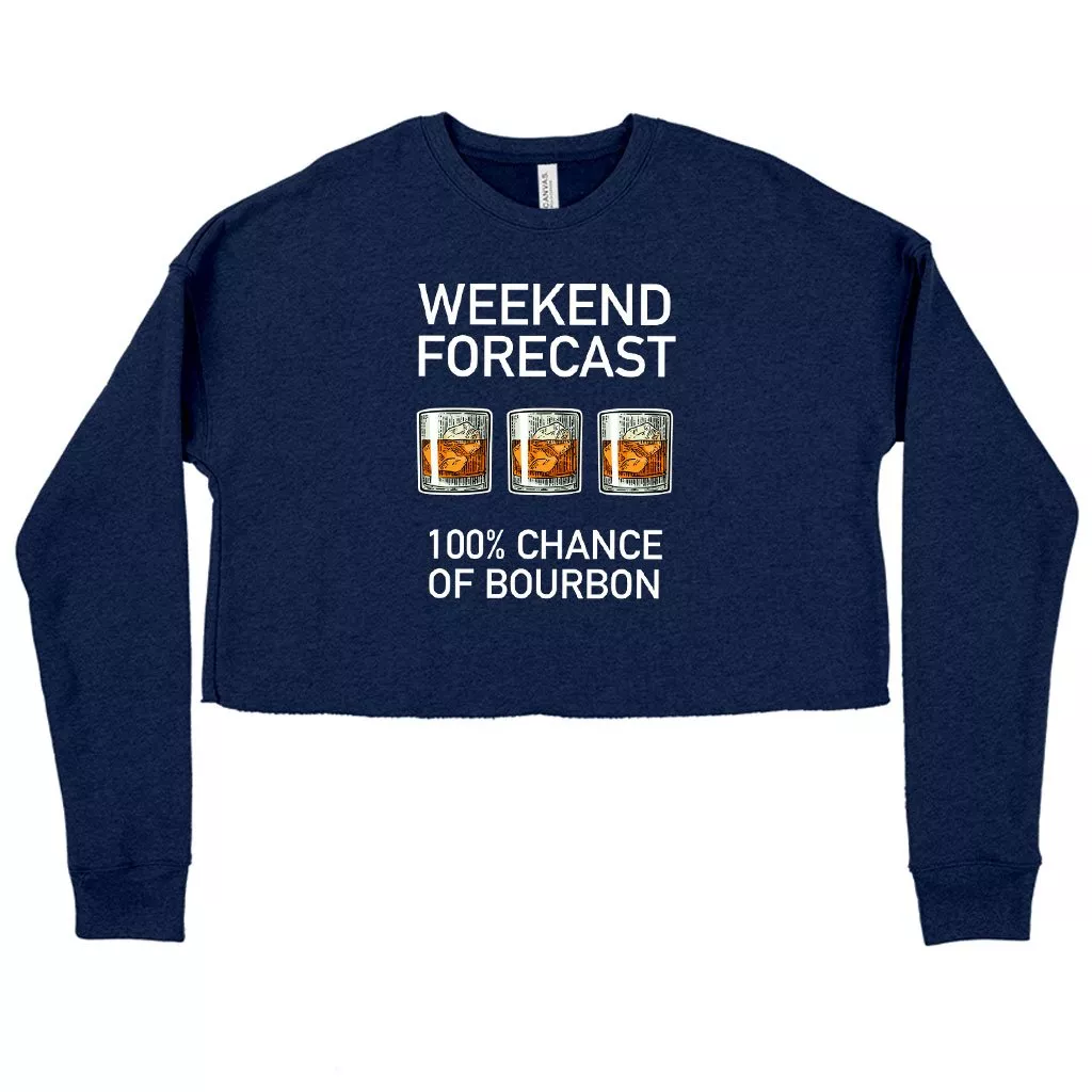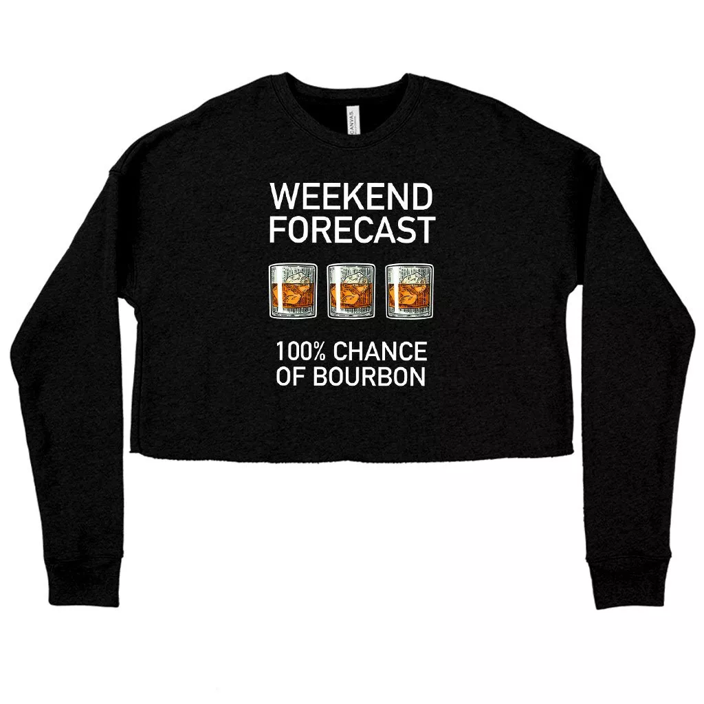 Women’s Cropped Fleece Weekend Forecast Bourbon Funny Drinking Sweatshirt – Funny Merch