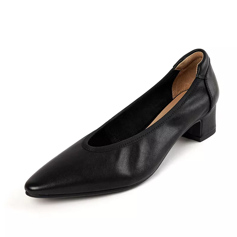The sleek round toe and shallow cut make these pumps a versatile choice for spring and autumn wear. The soft, genuine leather molds to your feet, providing a personalized fit from the first step. A sturdy 1.6-inch (4 cm) square heel adds just the right amount of lift for a confident stride, while the slip-on design ensures hassle-free wear all day long.