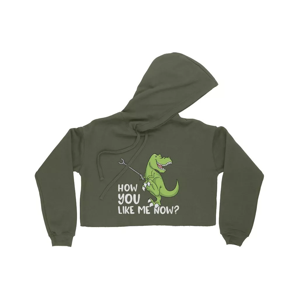 Women’s Green Dinosaur Cropped Fleece Hoodie