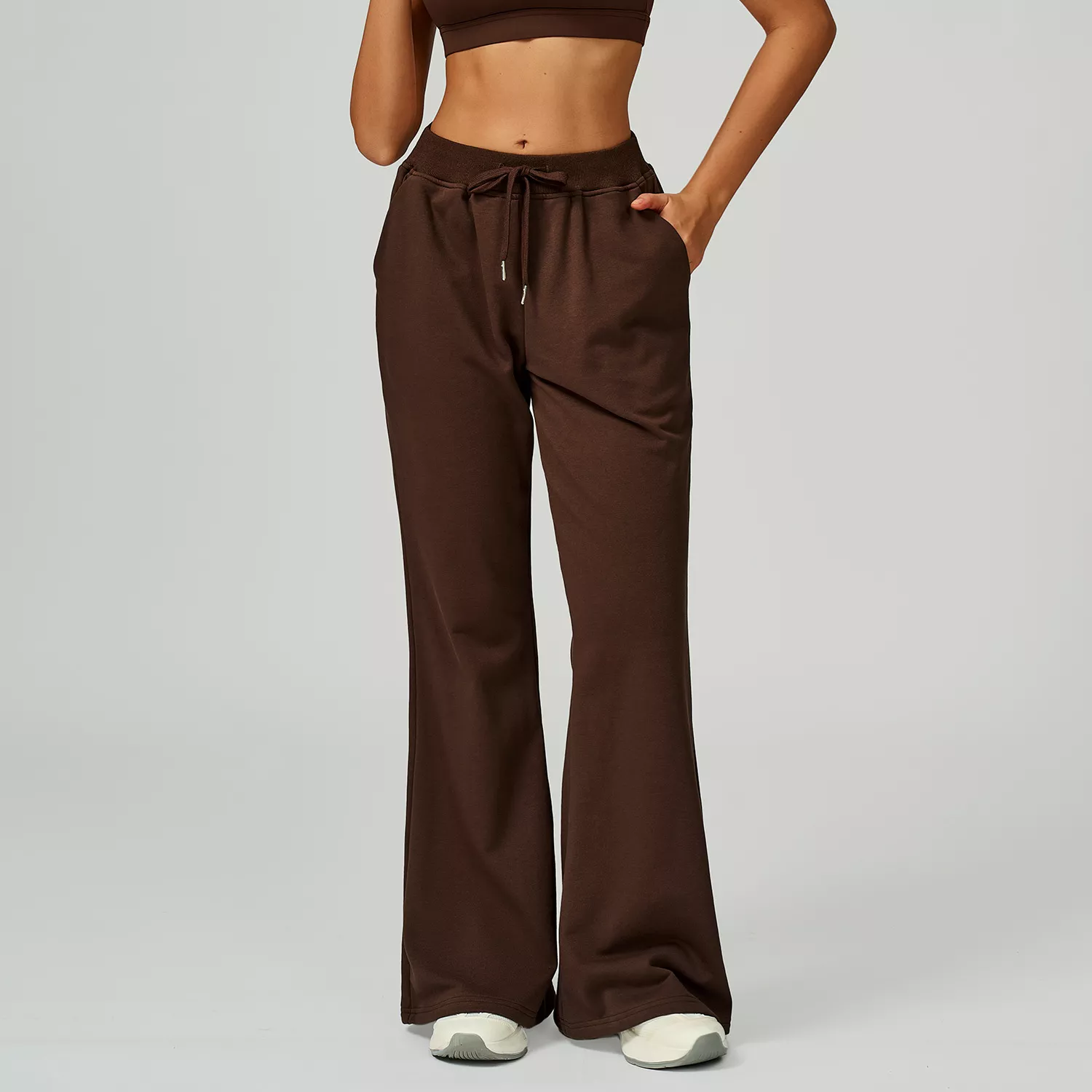 These versatile sweatpants are made for more than workouts—they’re perfect for running errands, lounging at home, or dressing up your athleisure look. The knit fabric stretches easily while maintaining its shape, and the flared leg cut gives you a modern, elongated appearance. Whether you pair them with a cropped hoodie or a sleek tank top, these pants deliver a stylish edge without compromising comfort.