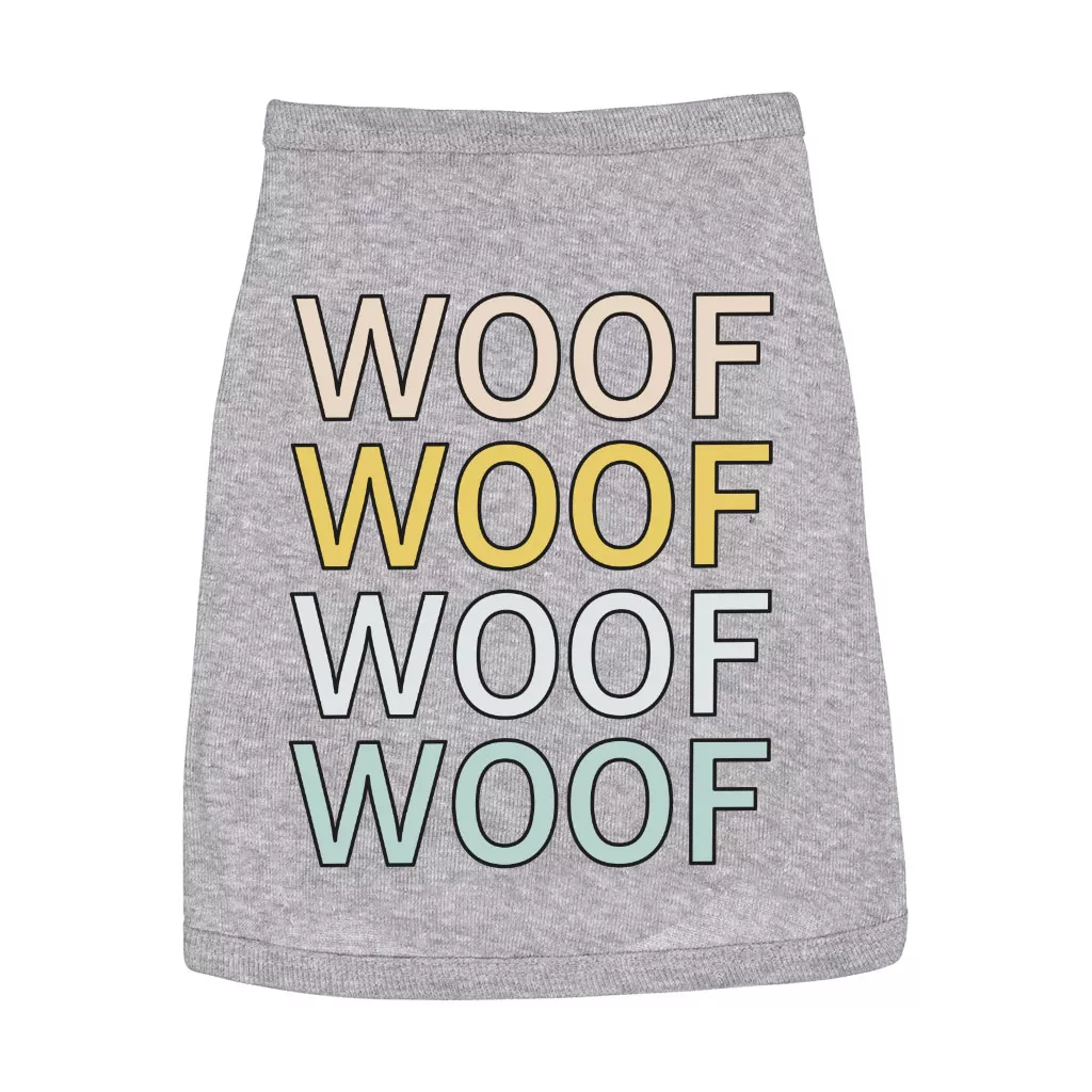Woof Dog Sleeveless Shirt – Word Art Dog Shirt – Beautiful Dog Clothing