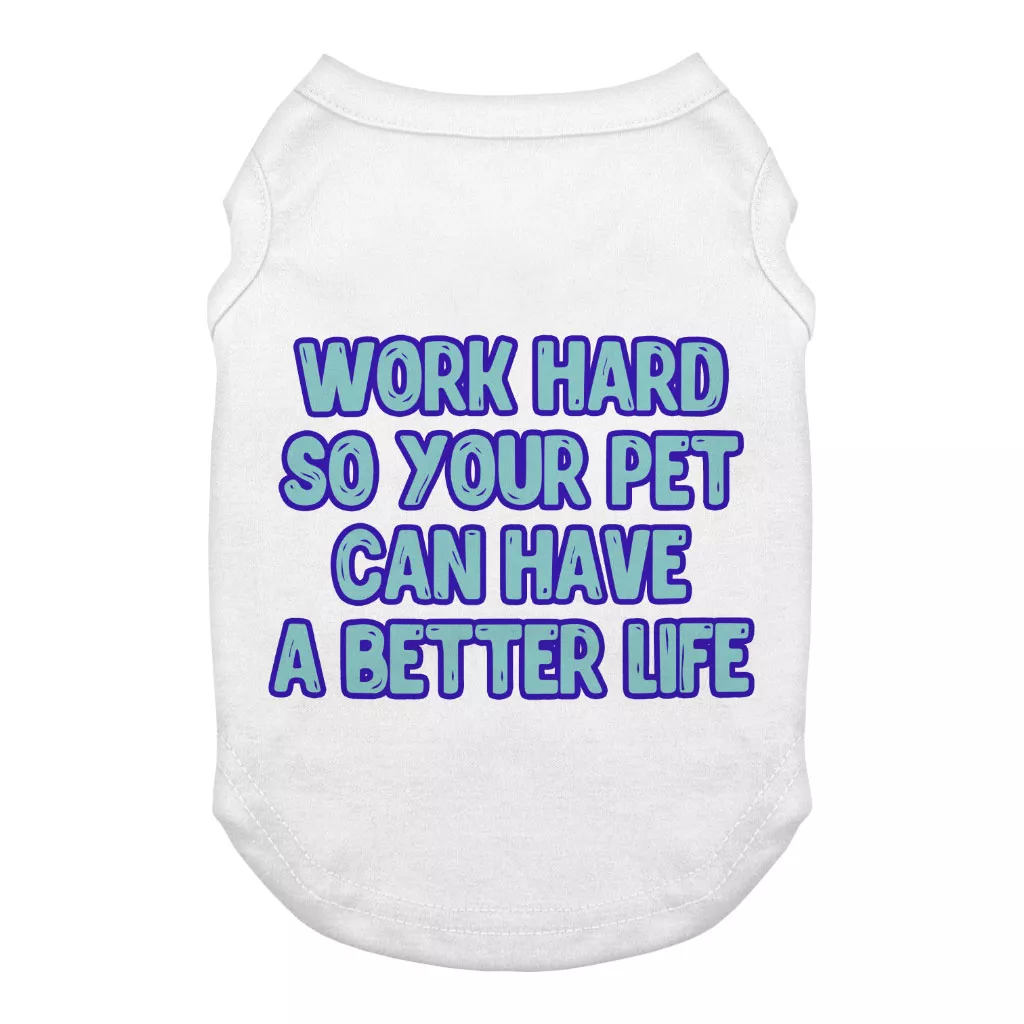Work Hard Dog Tank is made of quality polyester materials that allow your pet to enjoy its softness and comfort.